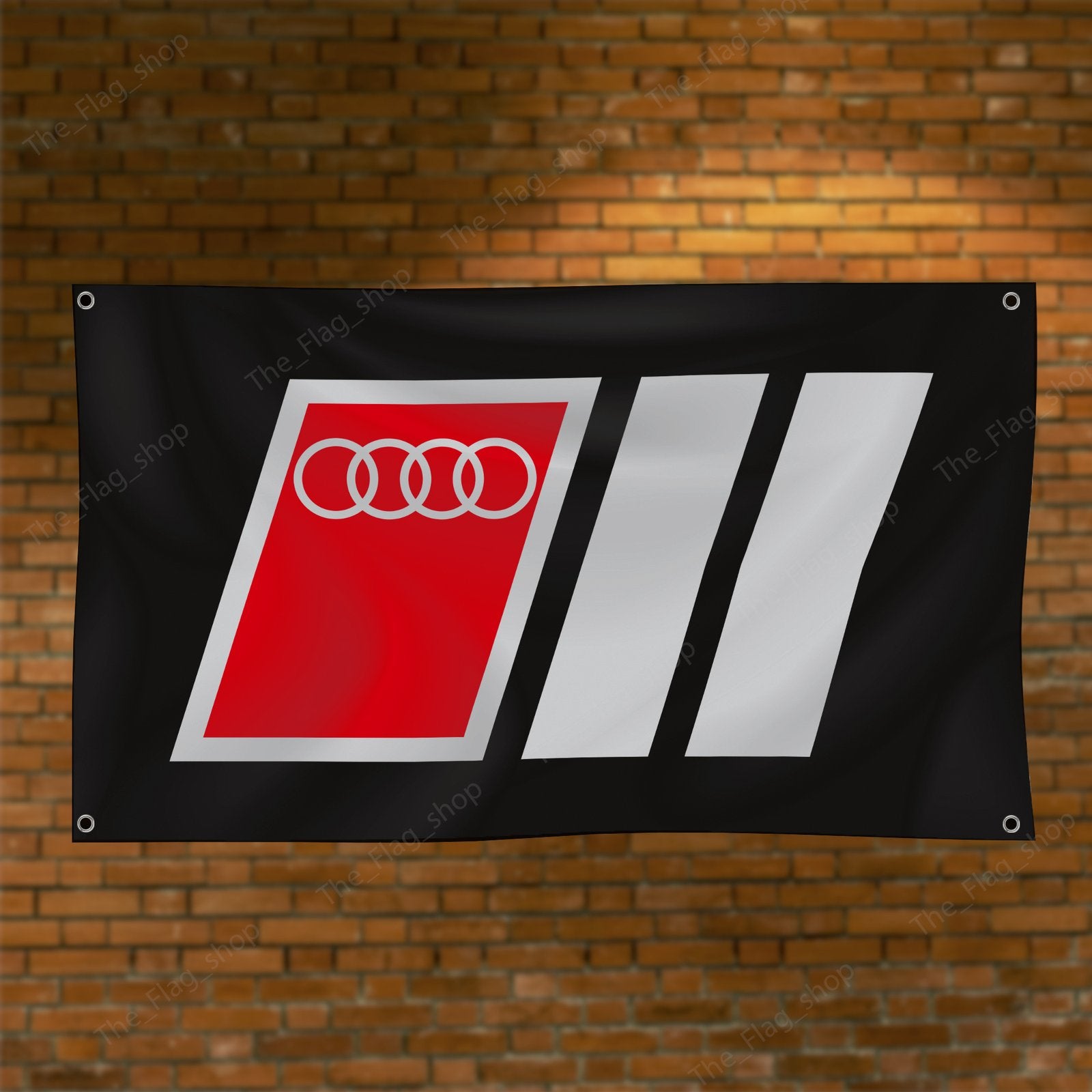 "Showcase your passion for Audi Motorsport with this 3x5 ft banner flag. Ideal for garages, man caves, or as wall décor, this durable flag features eye-catching Audi MotorSport graphics. Perfect for car racing fans, it’s designed for both indoor and outdoor use, making it a great addition to any space where motorsport enthusiasts gather."