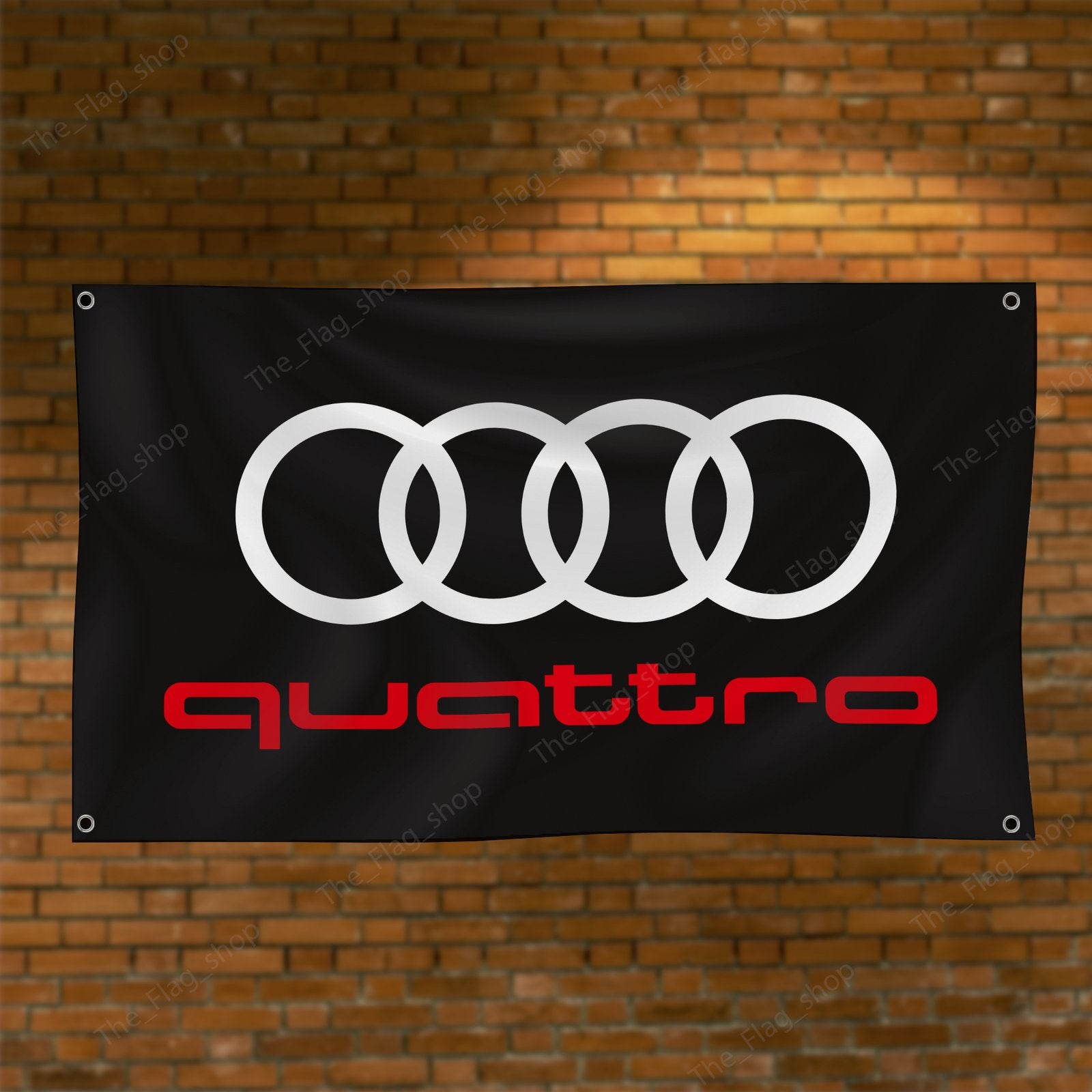 Show your appreciation for Audi quattro with this 3x5 ft flag. Ideal for car racing shows, garages, man caves, and wall décor, this durable banner features the iconic Audi quattro branding. Perfect for indoor and outdoor use, it’s a must-have sign for motorsport enthusiasts looking to display their passion for legendary performance and all-wheel drive excellence.