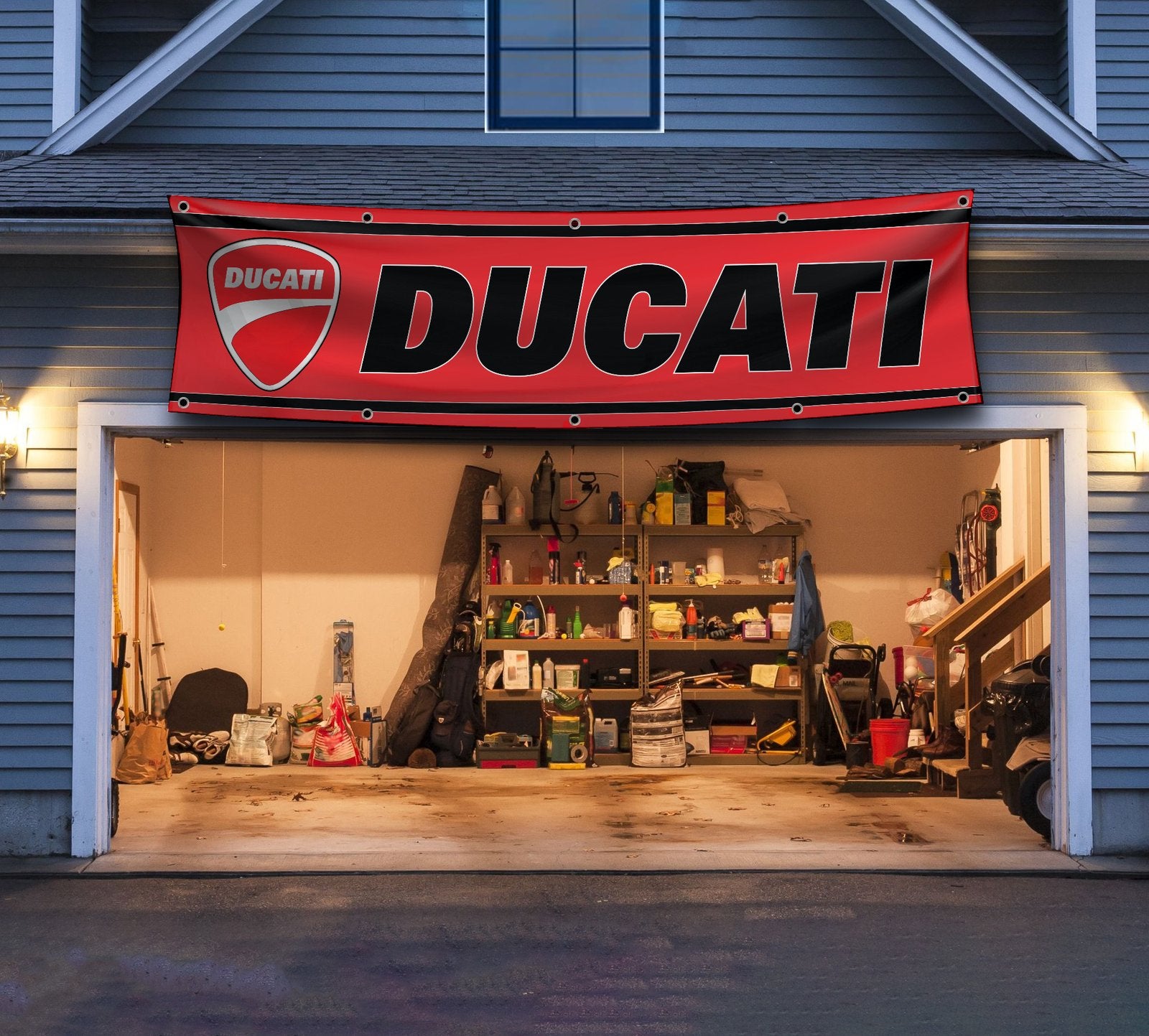 Showcase your passion for Ducati with this high-quality 2x8ft flag banner. Featuring vibrant, precision-printed graphics, this banner celebrates the legacy of Ducati’s engineering excellence and sleek design. The premium polyester construction ensures long-lasting durability and resistance to fading, making it perfect for outdoor events, garages, or motorcycle rallies. Lightweight and compact, it’s easy to transport and set up using the reinforced grommets along the edges. This banner is a must-have for Ducati enthusiasts looking to add a touch of Italian motorcycle heritage to their space.