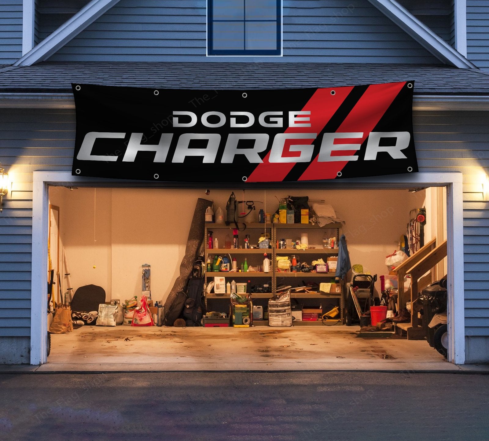 "Celebrate the power and performance of the iconic Dodge Charger with this 2x8 ft banner, a must-have for muscle car enthusiasts and Dodge fans. Featuring bold Dodge Charger branding and striking graphics, this banner adds a dynamic touch to any garage, workshop, man cave, or car show display. Crafted from durable, high-quality materials, it ensures long-lasting vibrancy and is suitable for both indoor and outdoor use. Whether you're showcasing your passion for the Charger’s legacy in American muscle cars or creating a standout décor piece, this banner is perfect for expressing your love for Dodge’s blend of style, speed, and performance."