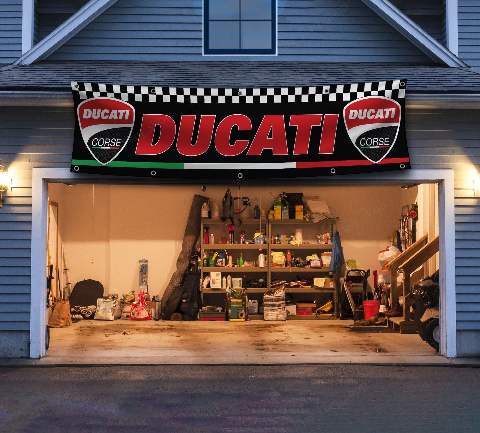 Showcase your passion for Ducati with this high-quality 2x8ft flag banner. Featuring vibrant, precision-printed graphics, this banner celebrates the legacy of Ducati’s engineering excellence and sleek design. The premium polyester construction ensures long-lasting durability and resistance to fading, making it perfect for outdoor events, garages, or motorcycle rallies. Lightweight and compact, it’s easy to transport and set up using the reinforced grommets along the edges. This banner is a must-have for Ducati enthusiasts looking to add a touch of Italian motorcycle heritage to their space.