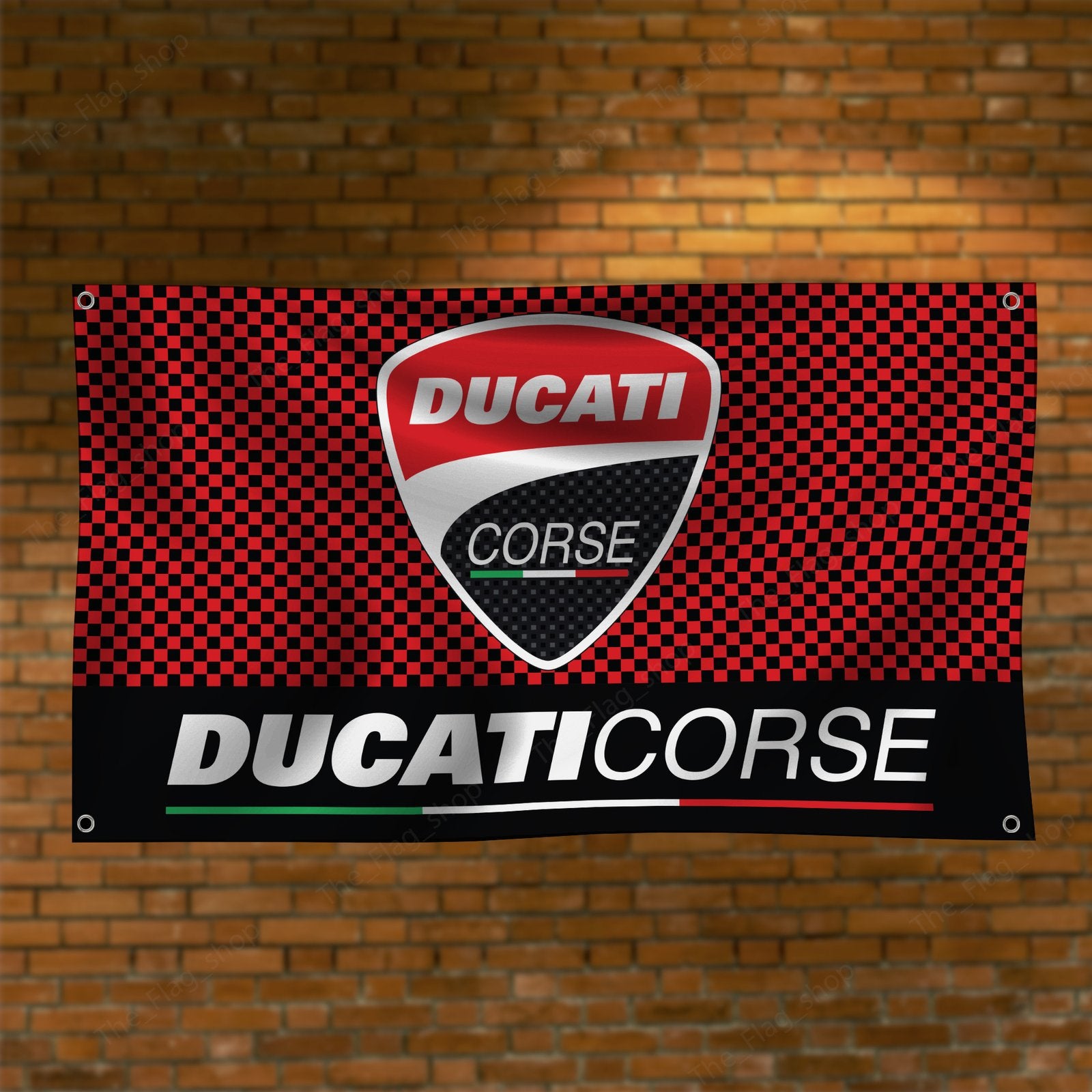 "Show your support for Ducati Corse with this 3x5 ft banner, designed for motorcycle racing enthusiasts. Featuring bold Ducati Corse graphics and iconic branding, this high-quality banner is perfect for garages, man caves, workshops, or motorcycle events. Made from durable materials, it’s ideal for both indoor and outdoor use, ensuring vibrant colors and long-lasting appeal. Celebrate the passion and performance of Ducati’s racing legacy with this must-have décor piece, perfect for showcasing your love for Ducati’s heritage in motorcycle racing and high-performance engineering."