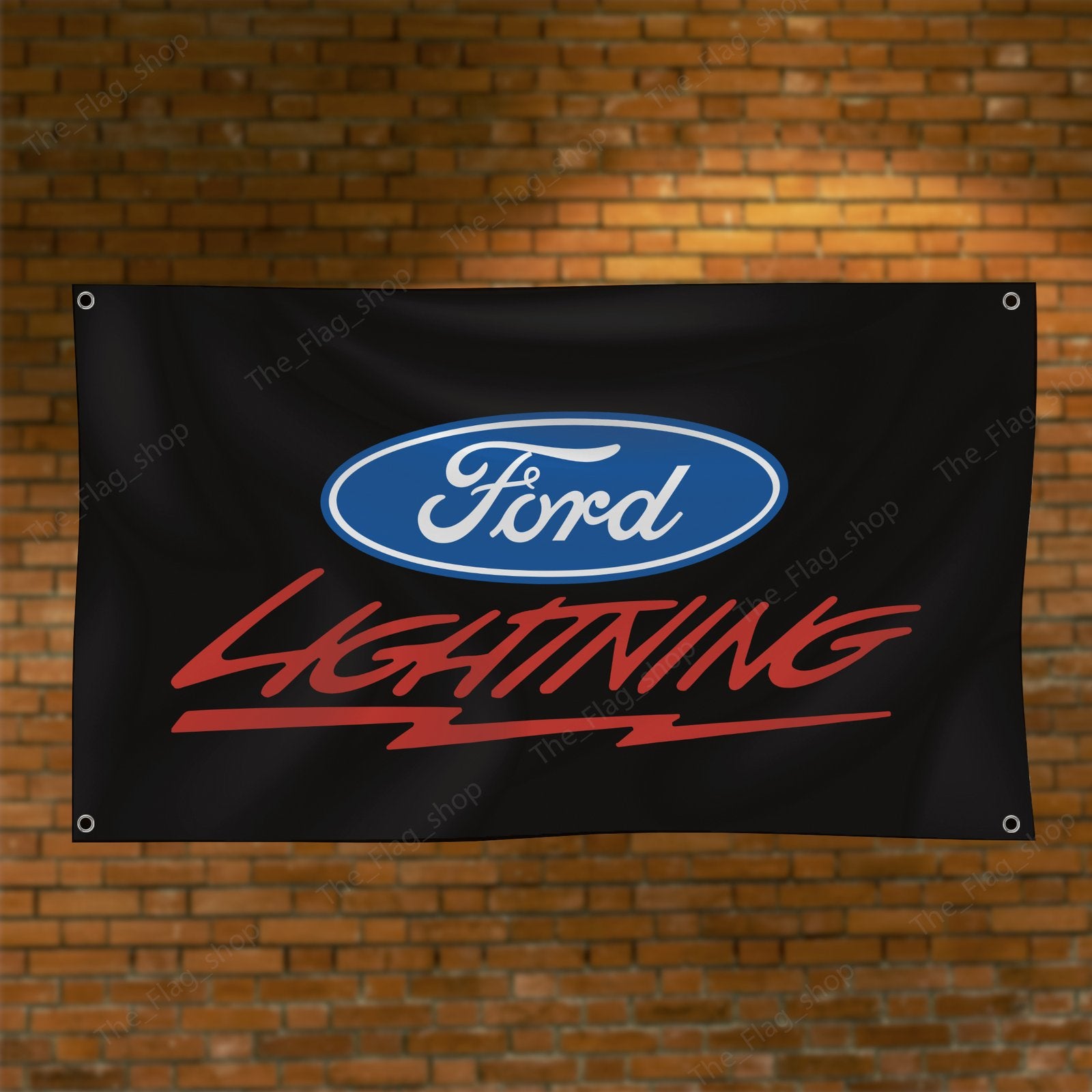 "Celebrate the power and performance of the Ford Lightning with this 3x5 ft flag, perfect for car and truck enthusiasts. Featuring bold Ford Lightning graphics, this high-quality banner adds a dynamic touch to your garage, man cave, workshop, or car show display. Crafted from durable materials, it ensures vibrant colors and long-lasting appeal, suitable for both indoor and outdoor use. Highlight Ford’s legacy of high-performance trucks with this stylish décor piece, ideal for fans of the iconic Lightning and those who appreciate speed, innovation, and American automotive excellence."