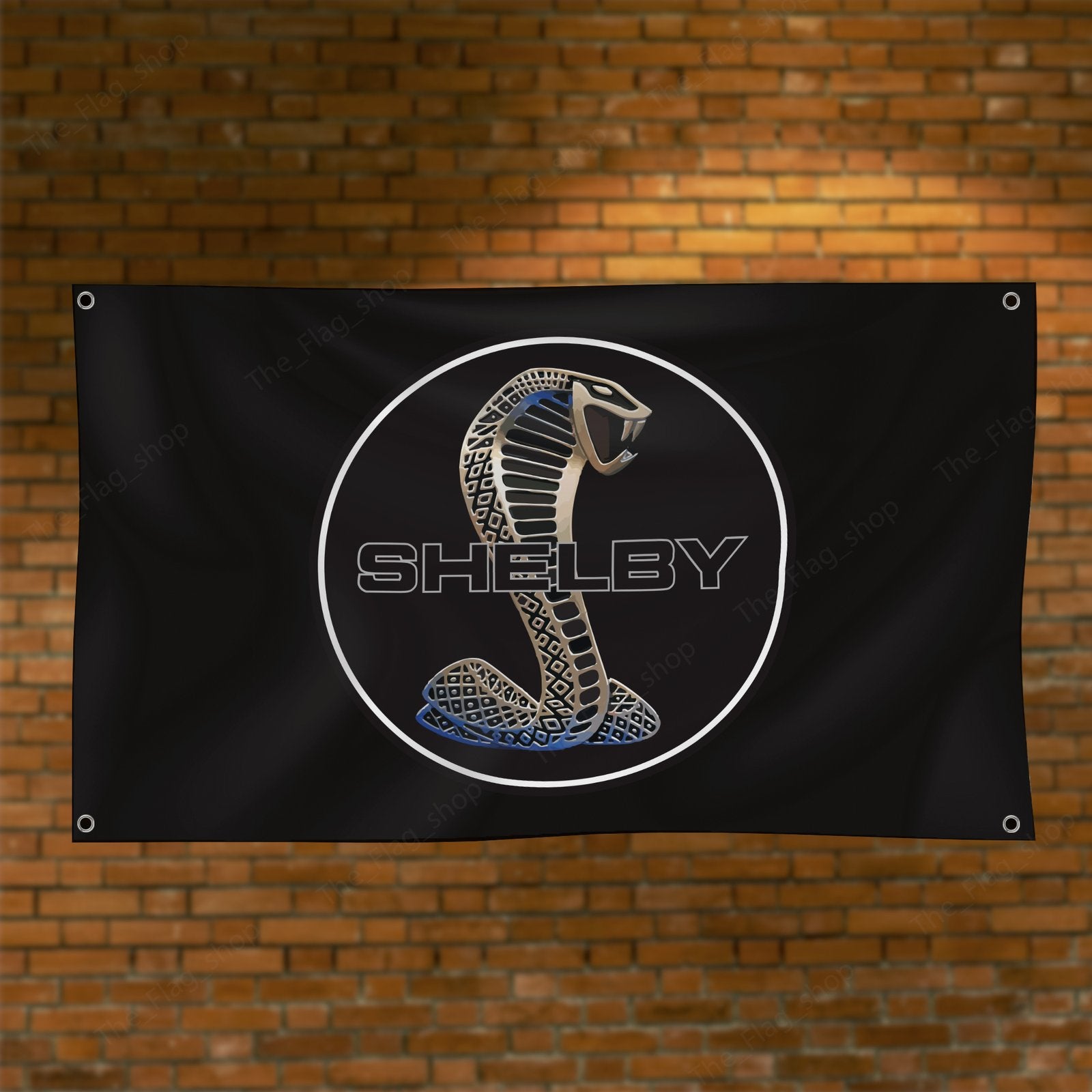 "Show your admiration for the legendary Ford Shelby Cobra with this 3x5 ft flag, designed for car enthusiasts and collectors. Featuring bold Shelby Cobra graphics, this high-quality banner is perfect for enhancing your garage, man cave, workshop, or car show display. Crafted from durable materials, it offers vibrant colors and long-lasting appeal, suitable for both indoor and outdoor use. Celebrate the performance, power, and history of the iconic Shelby Cobra with this stylish décor piece, a must-have for fans of high-performance vehicles and motorsport excellence."