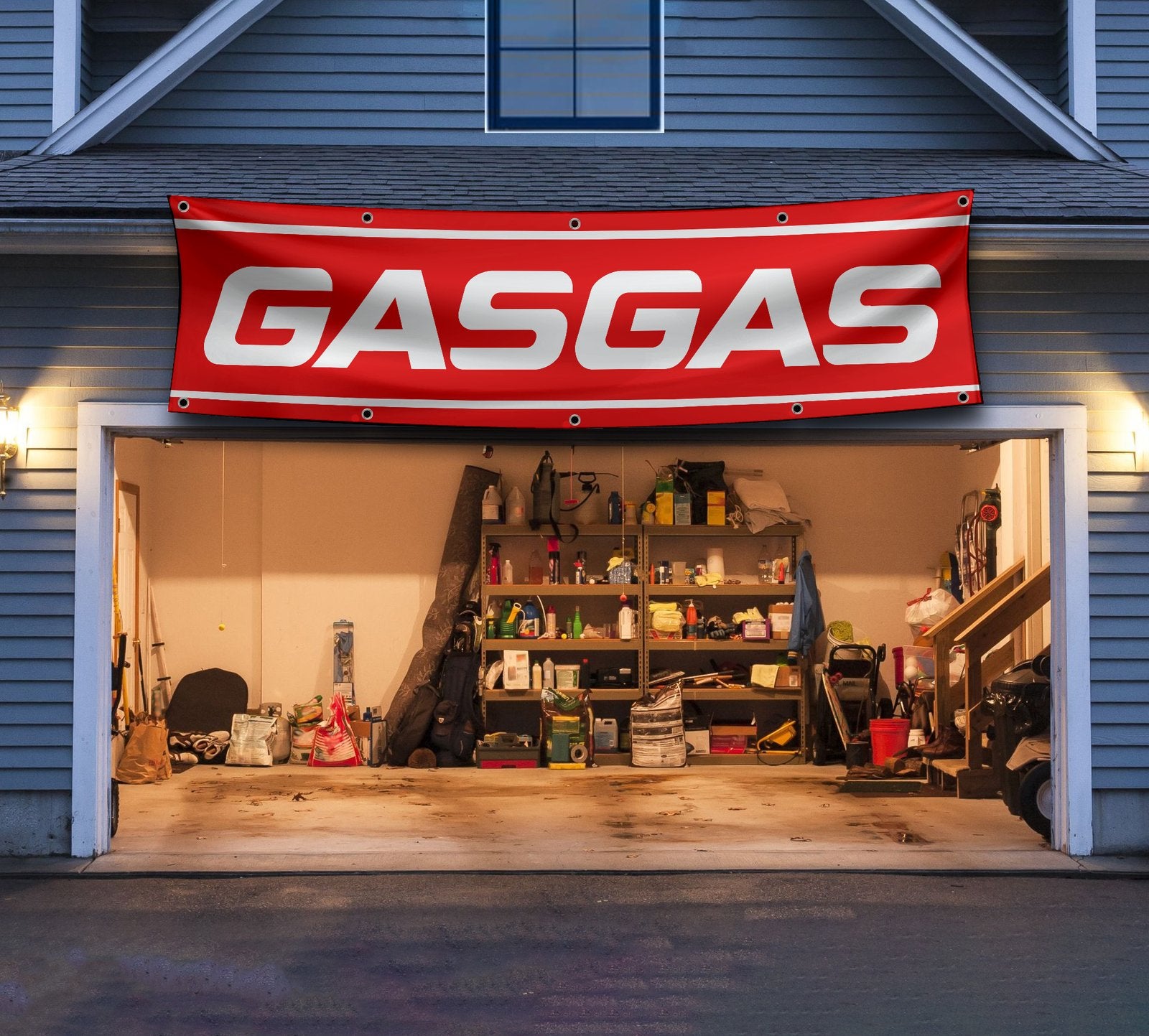"Showcase your passion for high-performance motorcycles with this Gas Gas Motorcycle 2x8 ft banner, perfect for MotoGP fans and riders alike. Featuring bold Gas Gas branding and racing-inspired graphics, this banner is ideal for enhancing your man cave, garage, workshop, or motorcycle show display. Made from durable, high-quality materials, it offers vibrant colors and long-lasting appeal, suitable for both indoor and outdoor use. Celebrate the spirit of adventure and the thrill of racing with this stylish décor piece, a must-have for any Gas Gas enthusiast or motorsport fan."
