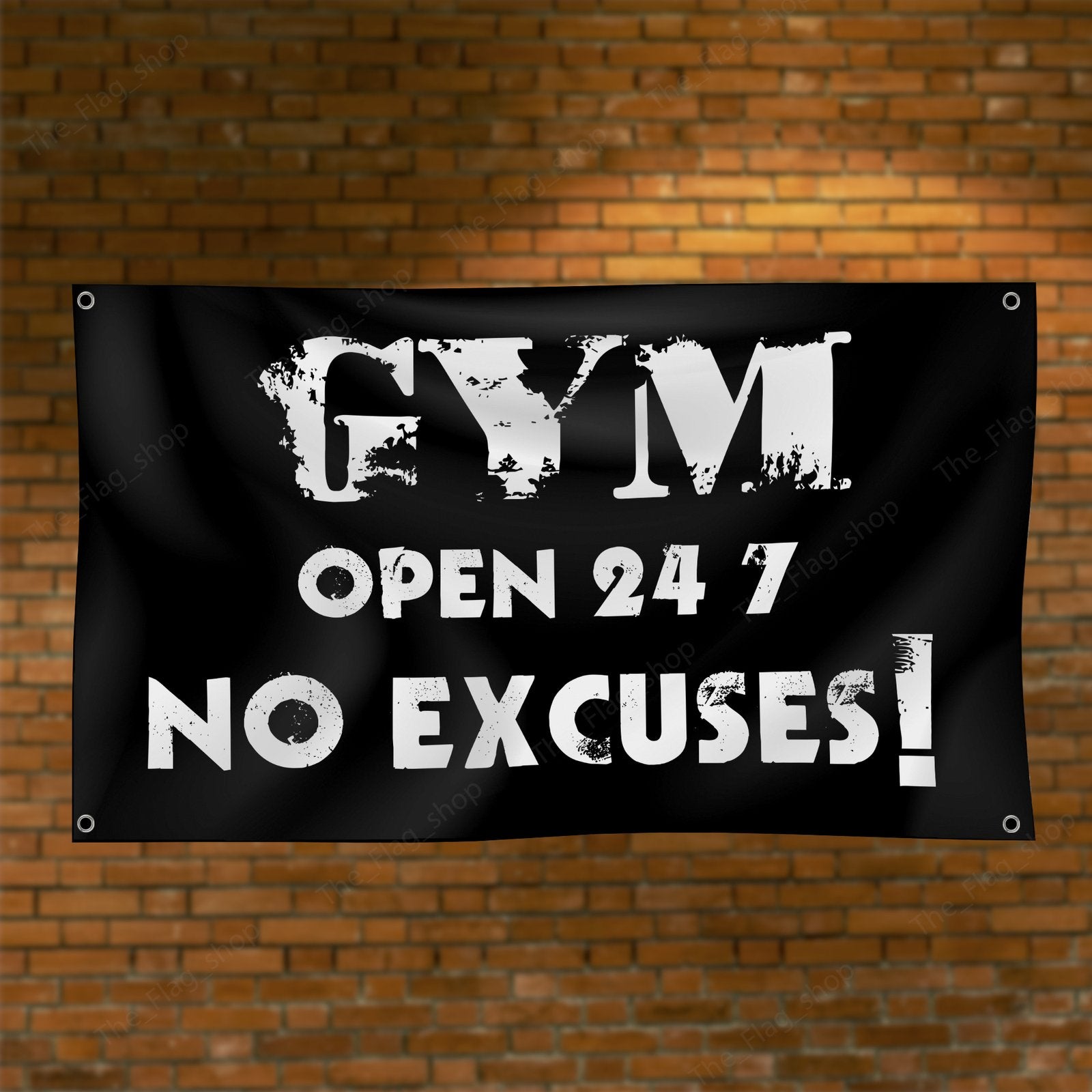 "Keep the motivation alive with this 3x5 ft 'Gym Open 24/7' Banner Flag, perfect for fitness enthusiasts and gym owners. Featuring a bold design and motivational slogan, this high-quality banner is ideal for gyms, man caves, offices, or workout spaces. Made from durable materials, it offers vibrant colors and long-lasting performance, suitable for both indoor and outdoor use. Inspire dedication and determination with this stylish décor piece, a great way to set the tone for your fitness journey and show your commitment to health and strength."