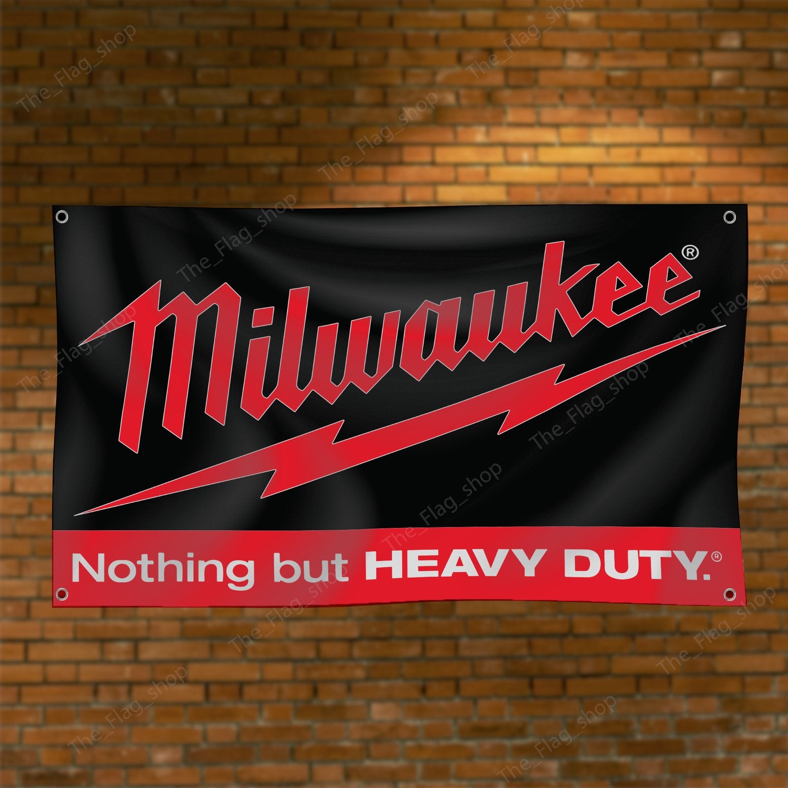 \nWith its vibrant colors and durable fabric, the Milwaukee Power Tools flag adds both style and substance to your space. The perfect blend of industrial car show wall decor and garage accessories, it’ll catch the attention of anyone who values top-notch tools and craftsmanship.