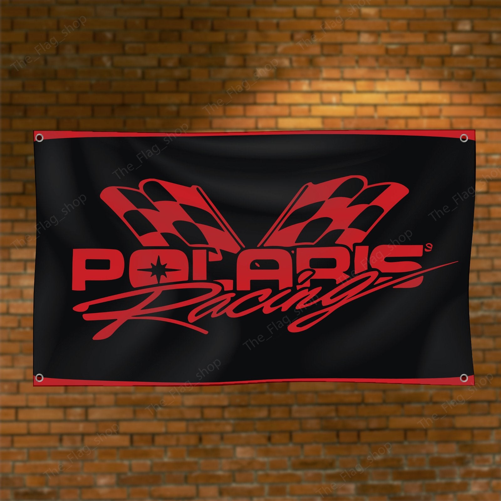 \nCrafted from durable, fade-resistant fabric, the Polaris Racing Flag is designed for indoor and outdoor use, ensuring it withstands the elements while maintaining its vibrant colors. Its large size ensures high visibility, whether you're hanging it in your garage, at a dirt track event, or showcasing it at a car show.