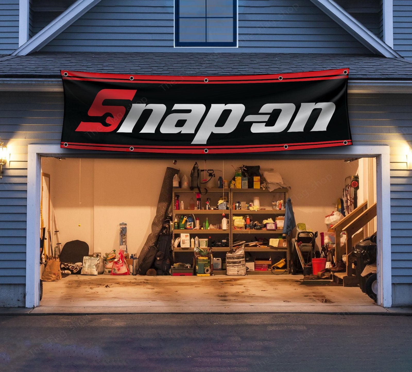 Show off your love for Snap-on Tools and motorsports with this bold Snap-on 2x8ft Banner. Perfect for racing fans, car enthusiasts, and mechanics, this eye-catching racing car flag celebrates the high-performance quality of Snap-on tools while adding a professional touch to your man cave, garage, or workshop. Featuring the iconic Snap-on logo, this banner brings the spirit of racing and tool mastery into any space.