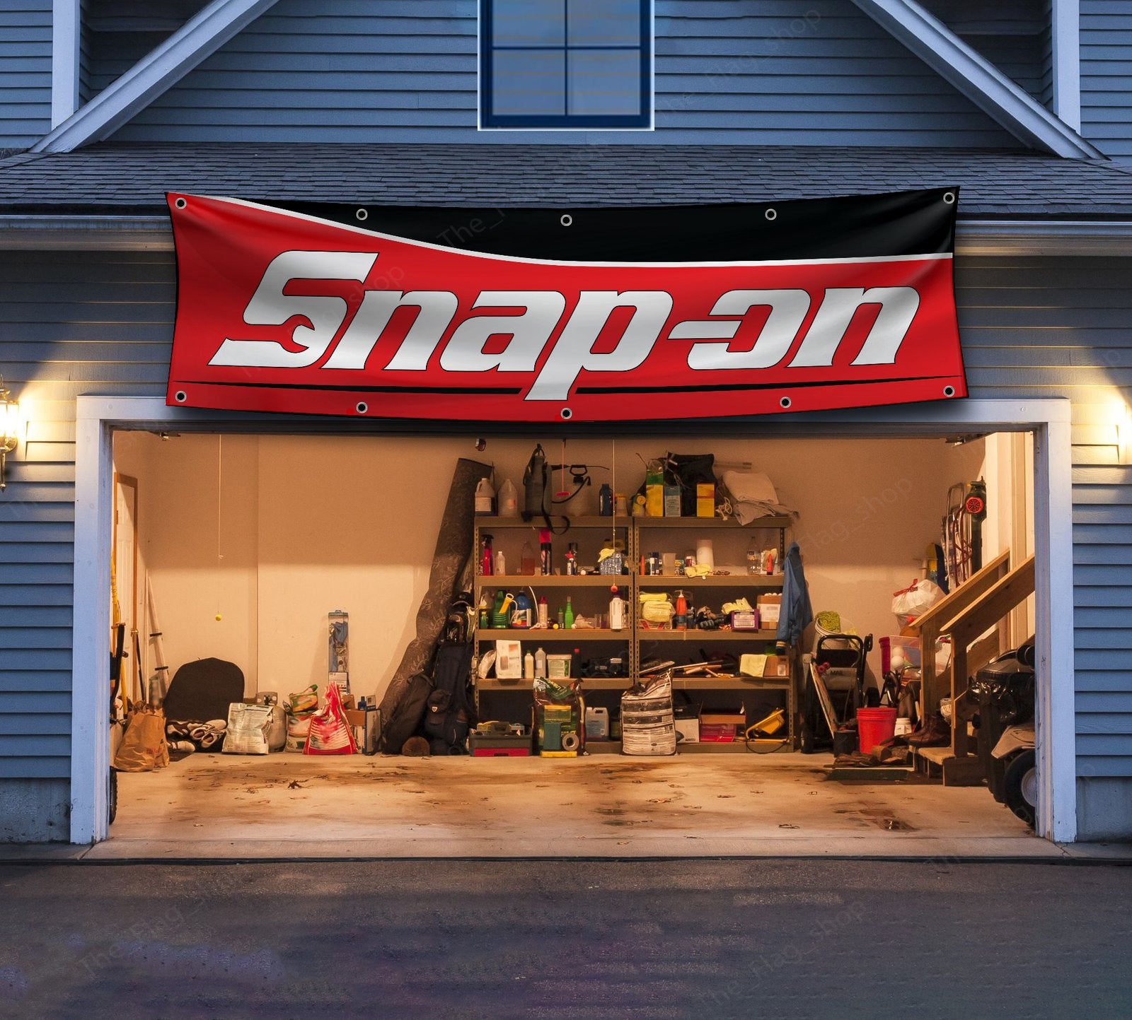 Show off your love for Snap-on Tools and motorsports with this bold Snap-on 2x8ft Banner. Perfect for racing fans, car enthusiasts, and mechanics, this eye-catching racing car flag celebrates the high-performance quality of Snap-on tools while adding a professional touch to your man cave, garage, or workshop. Featuring the iconic Snap-on logo, this banner brings the spirit of racing and tool mastery into any space.