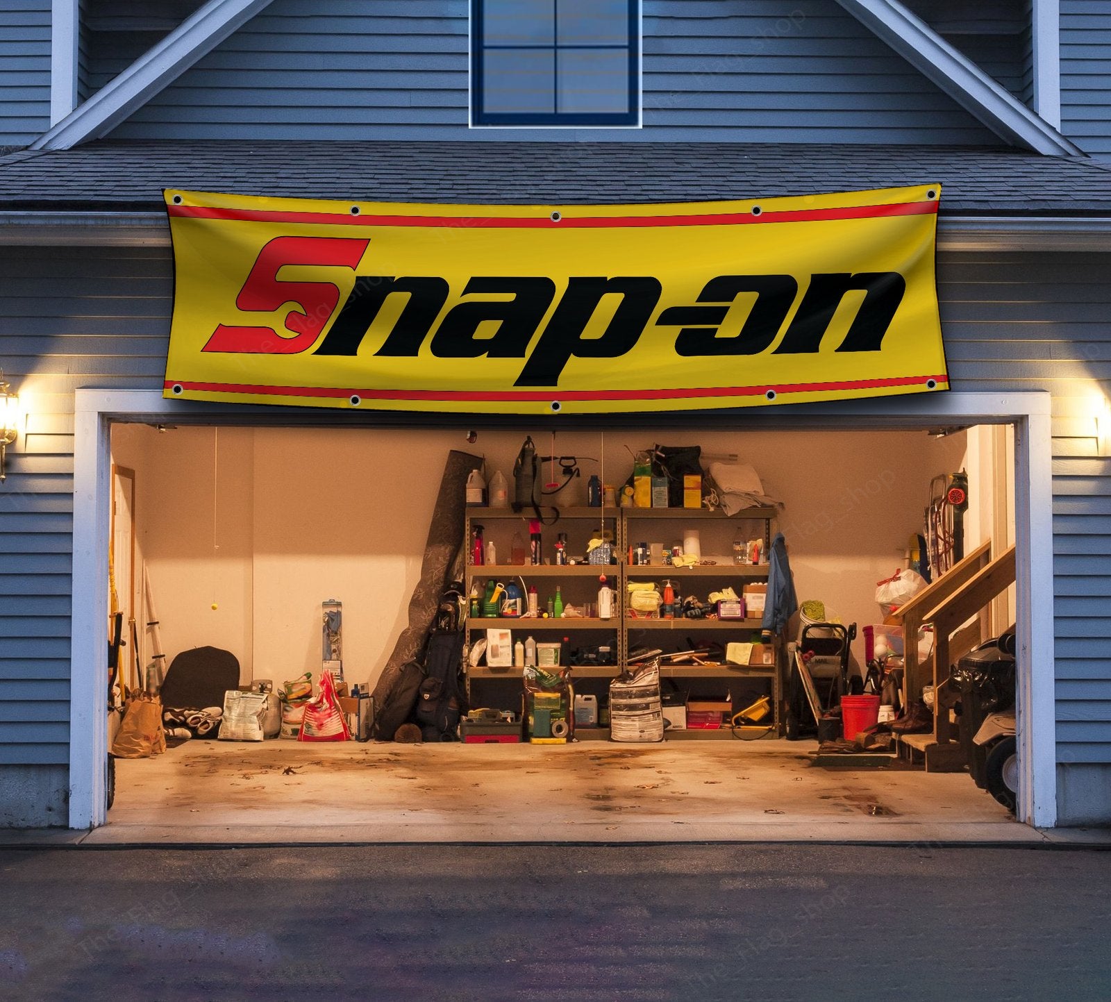 Show off your love for Snap-on Tools and motorsports with this bold Snap-on 2x8ft Banner. Perfect for racing fans, car enthusiasts, and mechanics, this eye-catching racing car flag celebrates the high-performance quality of Snap-on tools while adding a professional touch to your man cave, garage, or workshop. Featuring the iconic Snap-on logo, this banner brings the spirit of racing and tool mastery into any space.
