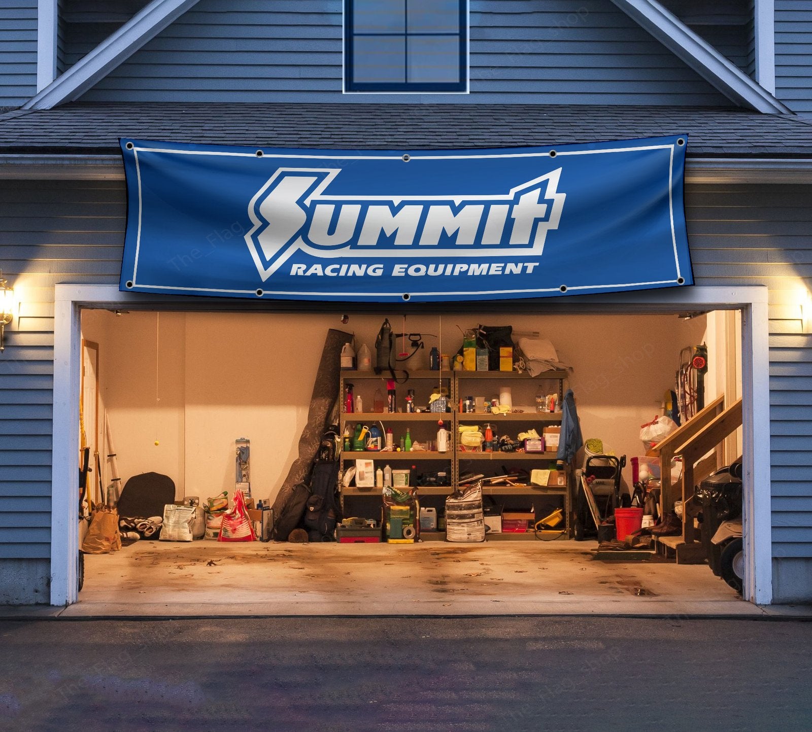Bring your garage, man cave, or car show space to life with the striking Summit Racing Blue Banner. Measuring 2x8ft, this vibrant blue banner showcases the iconic Summit Racing Equipment logo and is perfect for any car enthusiast or motorsports fan. Whether you're decorating your workshop, garage, or auto shop, this flag makes a bold statement about your passion for high-performance racing and Summit Racing parts.