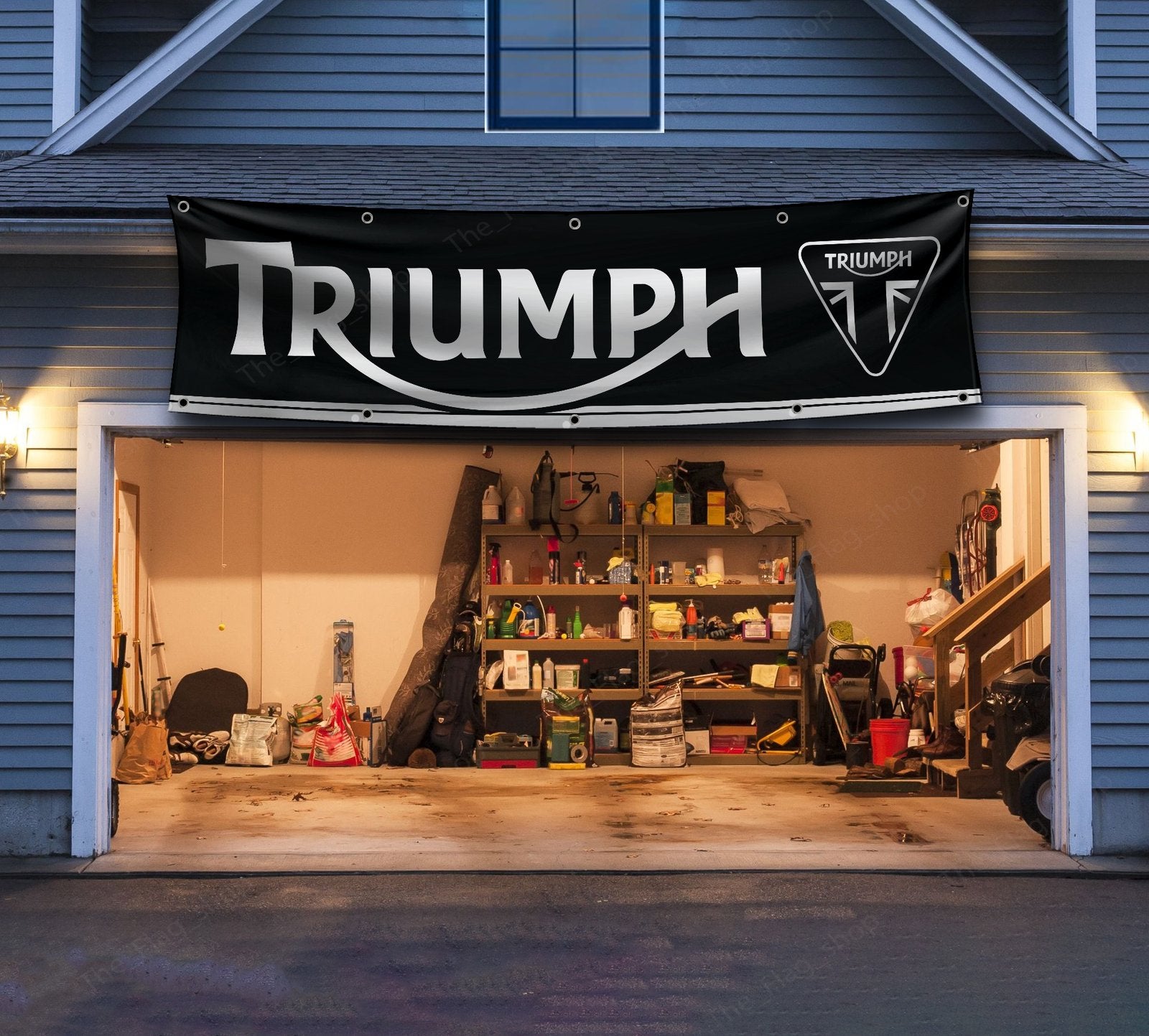 Celebrate the legacy of Triumph Motorcycles with this bold 2x8ft Triumph Motorcycles Banner. Perfect for your man cave, garage, or moto racing display, this eye-catching flag features the iconic Triumph Motorcycles branding, making it a must-have for any motorcycle enthusiast. Whether you’re a fan of classic bikes, racing, or Triumph’s rich history in motorsports, this large banner will elevate your space and showcase your passion for motorcycles.