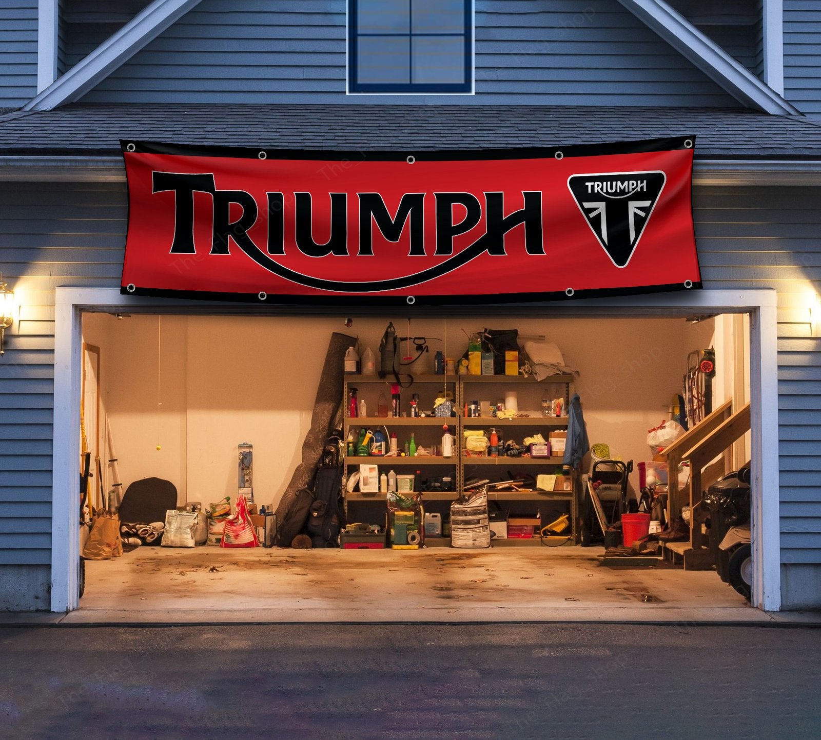 Celebrate the legacy of Triumph Motorcycles with this bold 2x8ft Triumph Motorcycles Banner. Perfect for your man cave, garage, or moto racing display, this eye-catching red flag features the iconic Triumph Motorcycles branding, making it a must-have for any motorcycle enthusiast. Whether you’re a fan of classic bikes, racing, or Triumph’s rich history in motorsports, this large banner will elevate your space and showcase your passion for motorcycles.