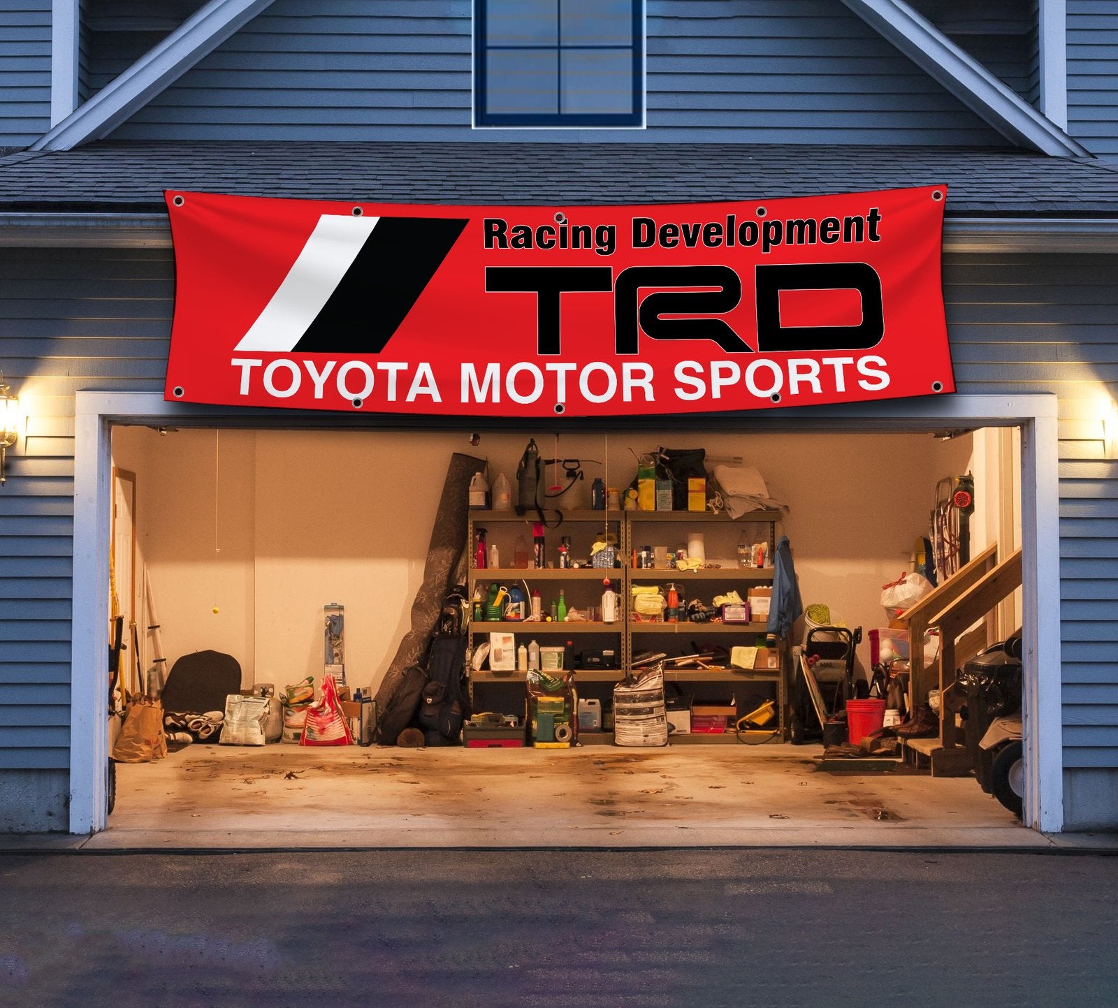 Transform your garage, man cave, or car show display with the bold and iconic Toyota TRD Banner. Measuring 2x8ft, this dynamic flag proudly showcases Toyota Racing Development (TRD), the performance arm of Toyota Motorsports. Whether you're a fan of motorsports, racing development, or Toyota’s performance vehicles, this banner is the perfect addition to your motorsports-inspired space.
