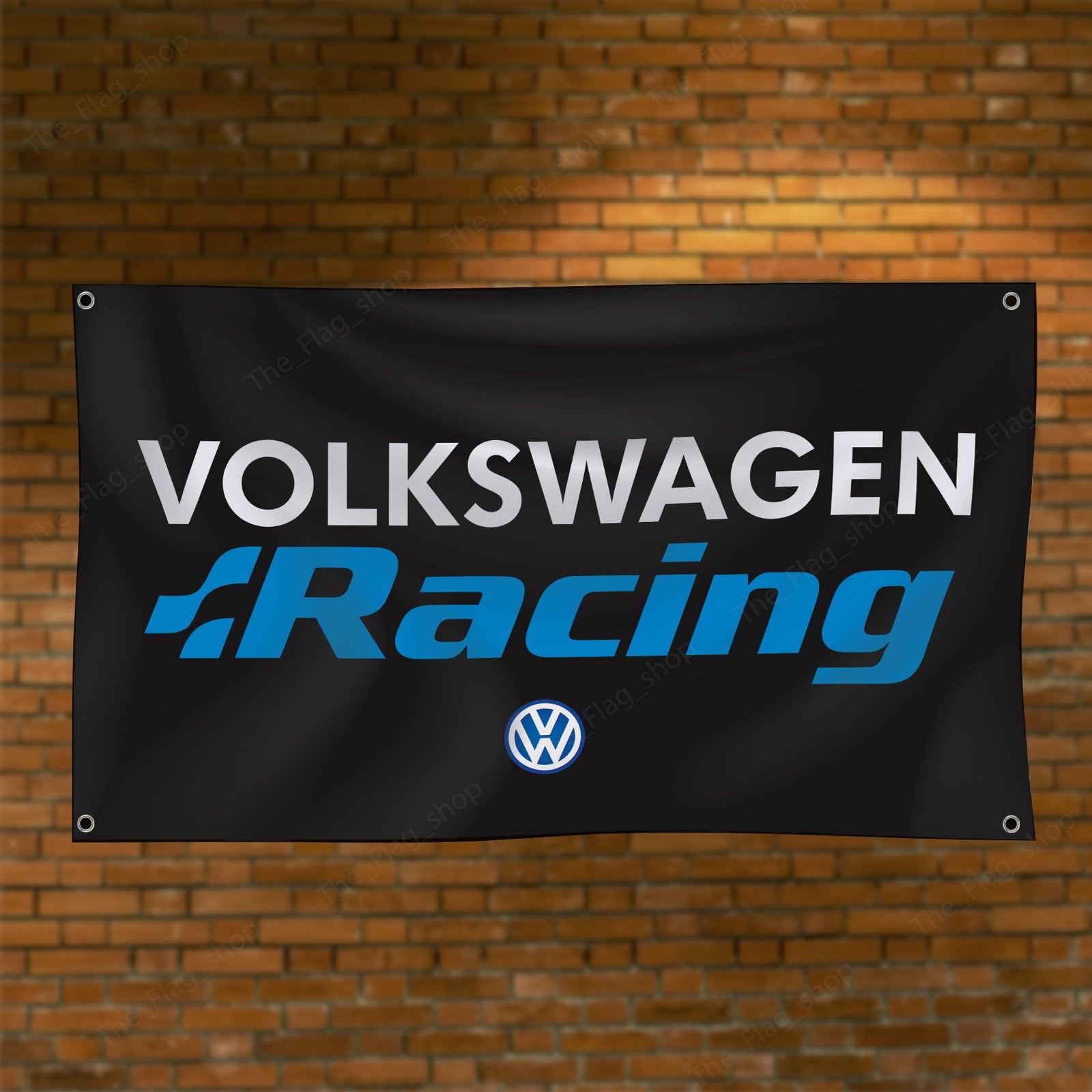 Add some Volkswagen Racing flair to your space with this sleek 3x5ft Volkswagen Racing Flag. Featuring the iconic VW logo and graphics of the legendary Jetta, Passat, Golf GTI, and Volkswagen Racing logos, this banner is perfect for any Volkswagen fan, motorsports enthusiast, or car collector. Whether you're decorating your garage, workshop, or man cave, this banner makes a bold statement and showcases your love for VW performance and racing heritage.