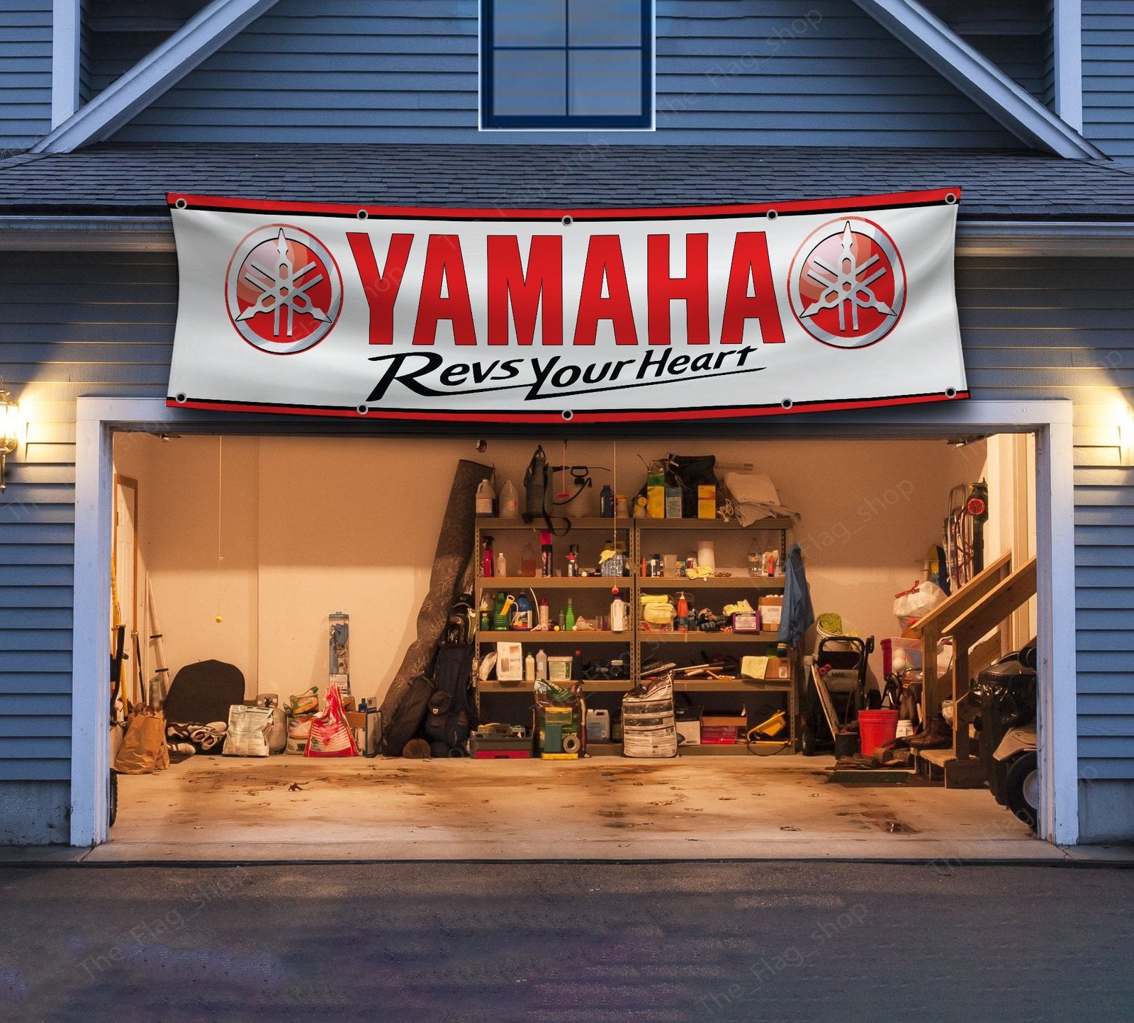 Show your love for Yamaha motorcycles with this bold Yamaha Banner. Featuring the iconic "Revs Your Heart" slogan, this 2x8ft flag is the perfect way to bring some motorcycle culture into your man cave, garage, or motorcycle show booth. Whether you're a Yamaha enthusiast, a fan of motorsports, or simply admire Yamaha's legacy in motorcycle performance, this high-quality banner is a must-have for any bike lover or car enthusiast.